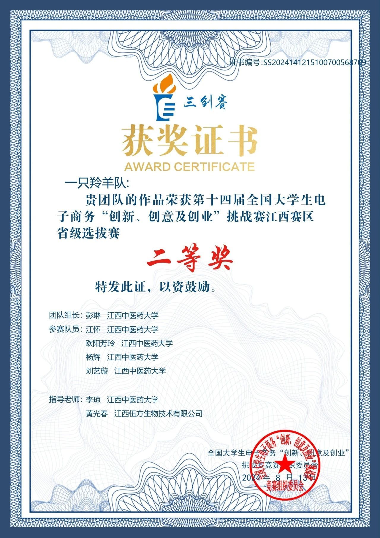 2.荣获第十四届全国大学生电子商务“创新、创意及创业”挑战赛江西赛区二等奖
