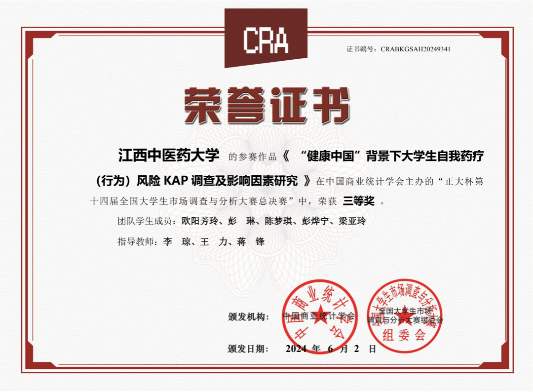 1. 荣获第十四届全国大学生市场调查与分析大赛江西赛区一等奖