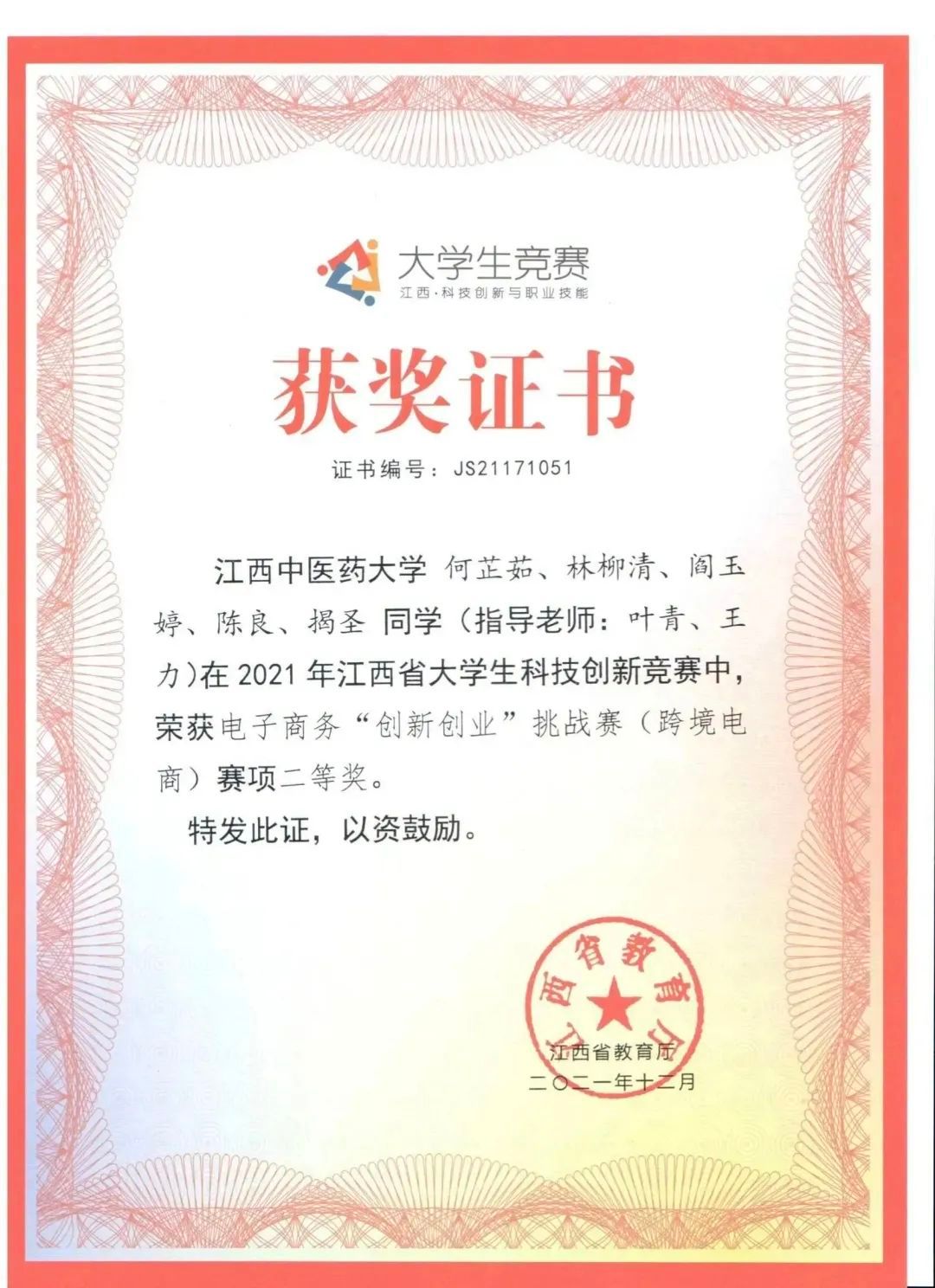 5.荣获2021年“江西省大学生科技创新大赛之大学生电子商务“创新、创业”挑战赛”二等奖
