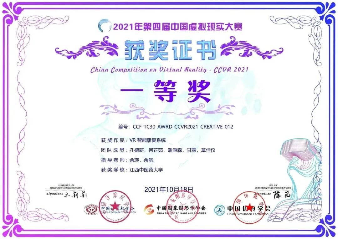 3.荣获2021年第四届中国虚拟现实大赛一等奖