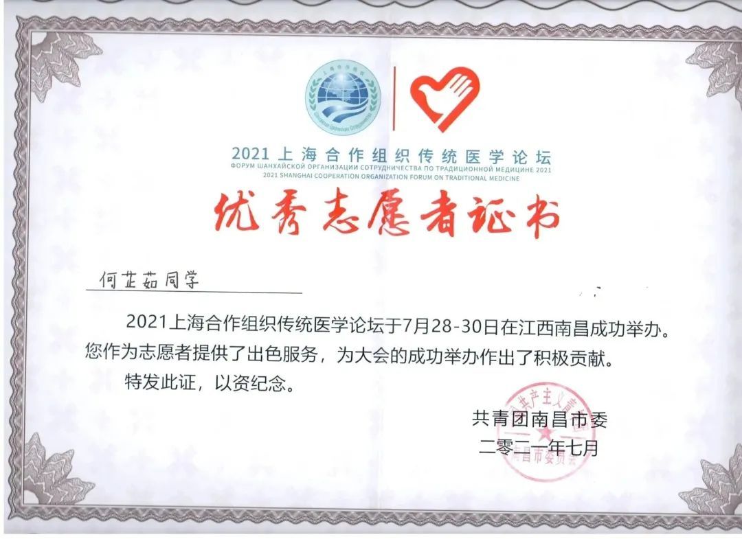 6.荣获2021上海合作组织传统医学论坛优秀志愿者
