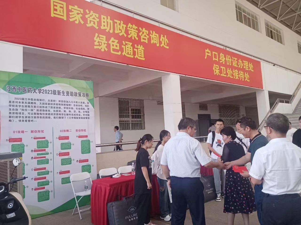 入学时。资助保障措施暖心。学校为672名学生办理了缓交学费入学、为16名特别困难的学生减免了学费、83名家庭经济非常困难的学生发放1000元新生专项补助、价值近600元的爱心大礼包。此外,学校领导一行亲临现场,与家庭经济困难学生代表亲切交谈,仔细询问他们的家庭经济情况和生活困难,勉励学生正视困难,励志图强。迎新绿色通道上,志愿者为新同学热情服务,耐心解惑,搬运行李,默默奉献。职能部门现场办公,为学生提供一站式资助服务,避免学生扎堆、排队现象。正如江同学说,他是来自云南偏远的山村,是一名孤儿,当收到录取通知书正在为学费犯愁时,辅导员老师第一时间打来电话,向他介绍了学校资助政策,帮他申请了学费减免。到校后,让他感动的是学校不仅为他免除了学费,而且还发放了1000元的补助和精美的床上用品,还有学校领导关爱勉励以及小哥哥、姐姐热情周到的服务,无不让他深深地感到江西中医药大学是一个充满温情的大家庭。