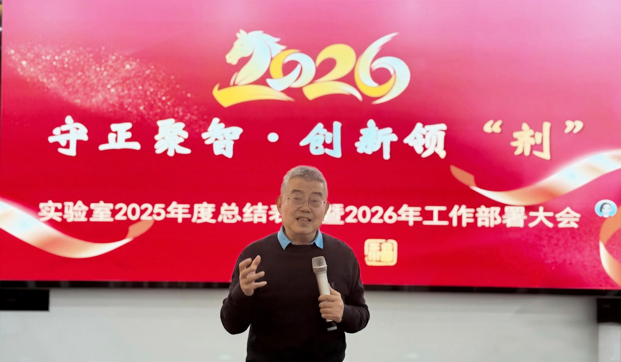 在“主题分享与年度展望”环节,与会人员围绕 “1000天后的世界” 开展交流,共同探讨科研人员在未来三年中的发展定位、竞争力构建与AI等技术在科研中的应用前景。杨明在总结部署中强调,面对国家“十五五”规划开局与实验室成立二十周年的双重节点,全体成员应坚守“守正”初心、汇聚“聚智”合力,以创新为引领,明确2026年度重点任务与实施路径,推动实验室在中药制剂领域实现更高质量、更具影响力的发展。