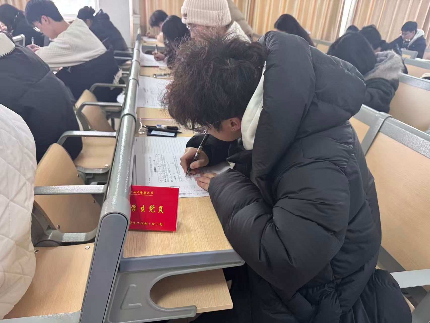 本次考试,学院在每位学生党员的桌前醒目放置专属的“学生党员”标识牌,这块小小的标识牌既是身份的彰显,更是责任的提醒。考场上秩序井然,全体考生自觉遵守考场纪律,专心致志思考、认真严谨作答。从入场签到到交卷离场,这块“学生党员”标识牌始终醒目地摆在桌前,党员同学们也始终以高标准的党员素养严格要求自己,一言一行都为身边同学树立起了看得见、学得来的诚信应考榜样。