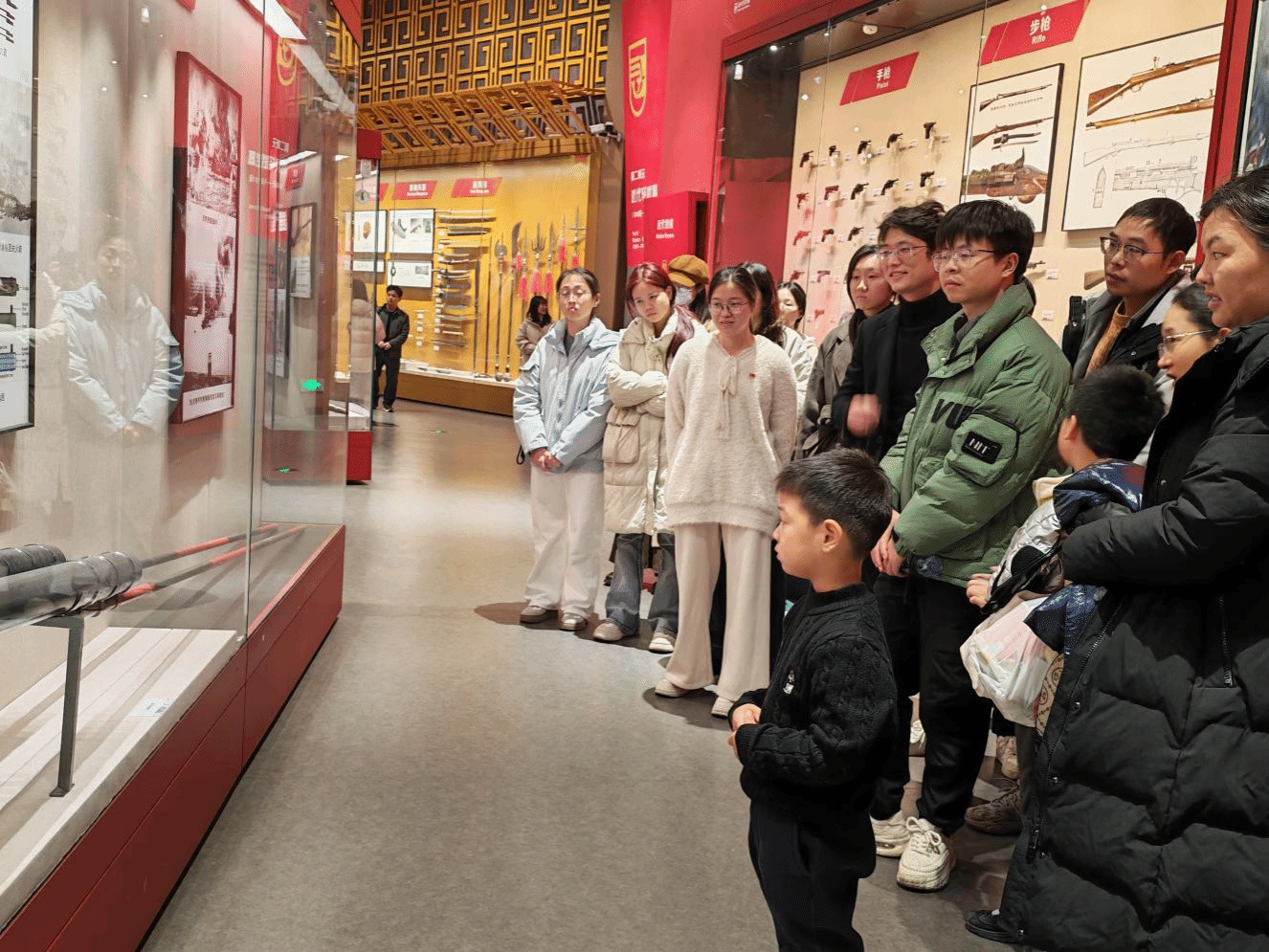 江中新闻网讯(通讯员 李超超 曾怡晶)为引导青年学子坚定理想信念、强化使命担当,12月12日下午,健康经济与管理学院组织师生党员及学生骨干代表,赴南昌市军事主题公园轻武器展示馆,开展“立报国强国大志向,做挺膺担当奋斗者”专题教育活动,以实地研学传承红色基因,汲取奋进力量。