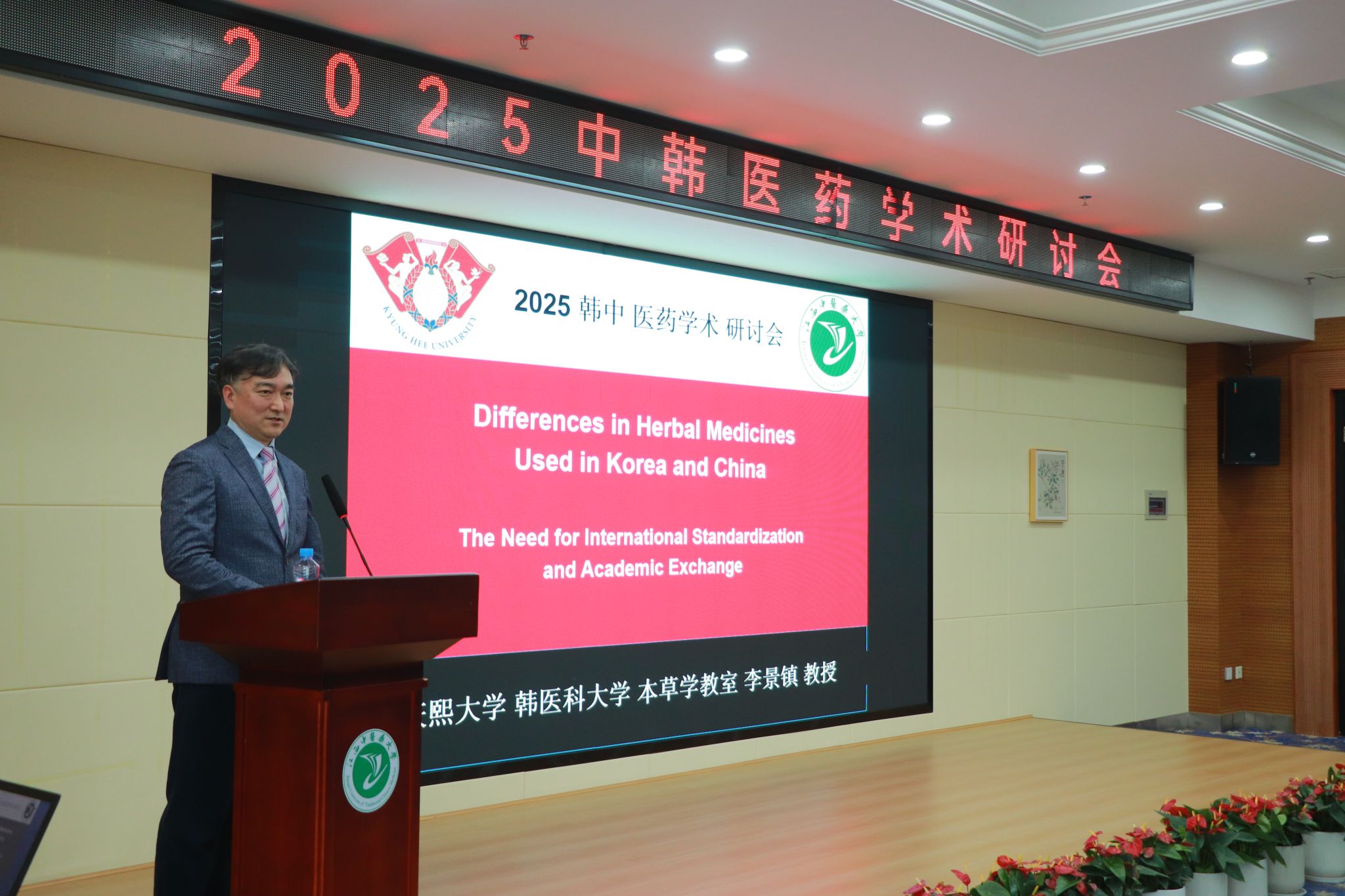 研讨会伊始,韩国庆熙大学韩医学院本草学主任教授金頀哲作为韩方领队发言。他简要介绍了庆熙大学及其个人科研经历,表达了深化两校在在传统医学教育与科研领域务实合作的深切期望,期待通过此次交流碰撞出更多创新火花。