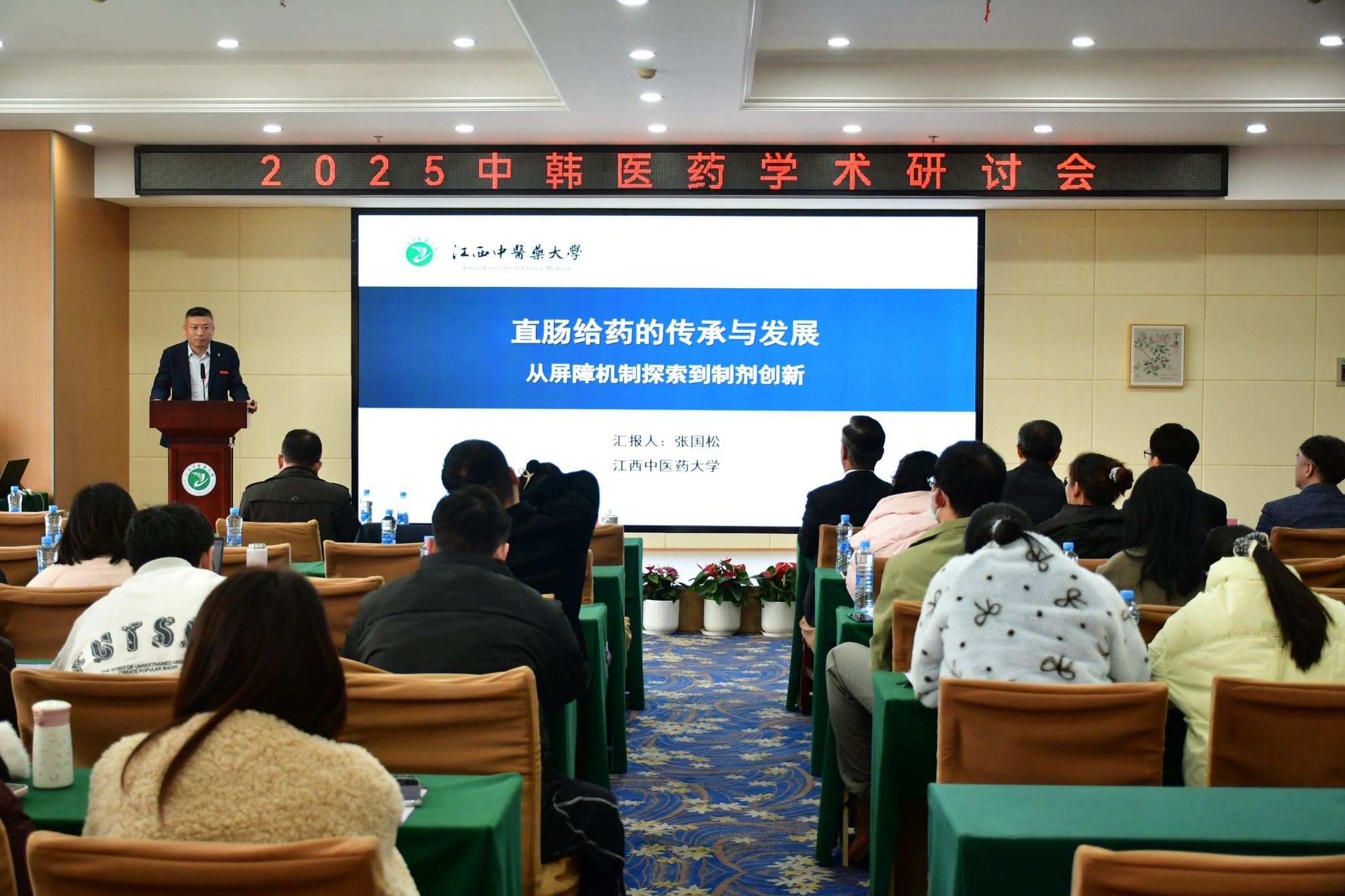 学校药学院副院长张国松教授围绕直肠给药这一主题,从屏障机制、制剂创新到新药研发进行了系统性报告,提出将其发展为精准高效的现代化递药平台。韩国庆熙大学韩医学院国际韩医学教育院长李相勋教授则探讨了针灸与中药在组织再生中的协同作用,拓展了传统疗法在现代再生医学中的应用可能。