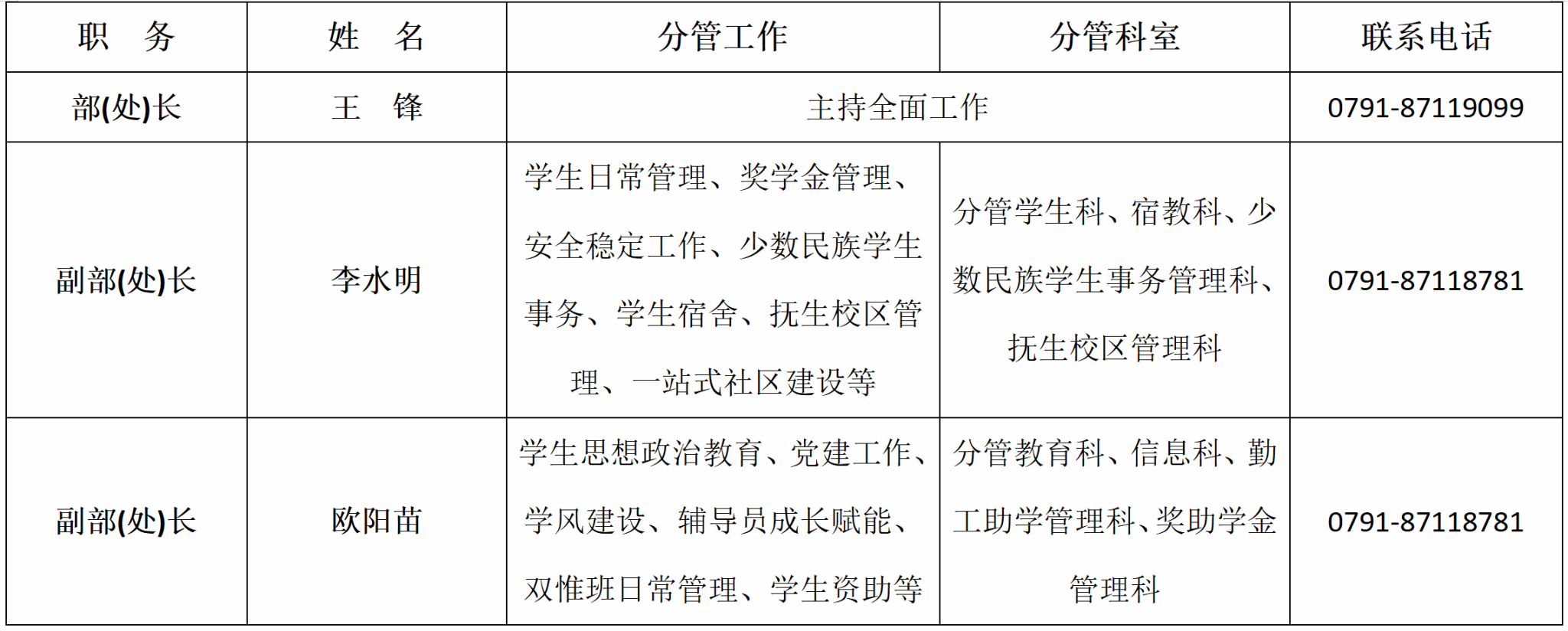 学生工作部(处)领导简介
