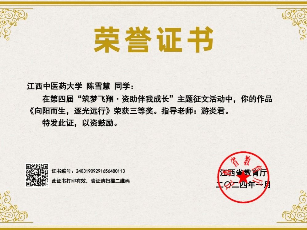 陈雪慧证书