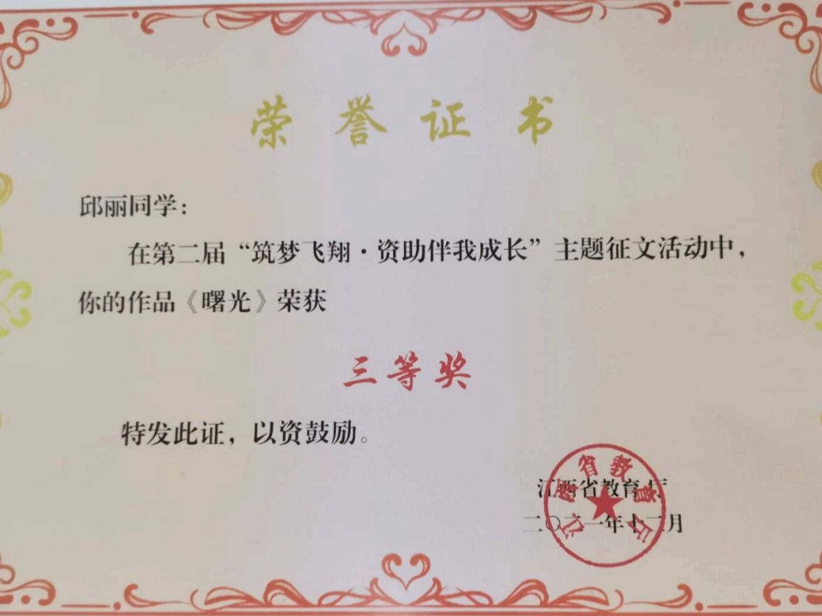 邱丽“曙光”三等奖
