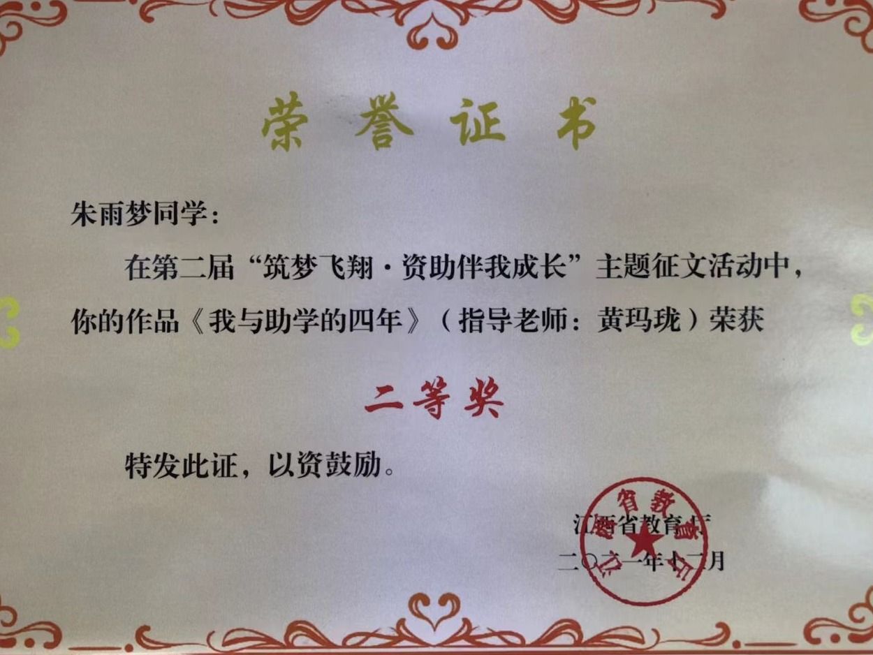 朱雨梦“我与助学的四年”二等奖